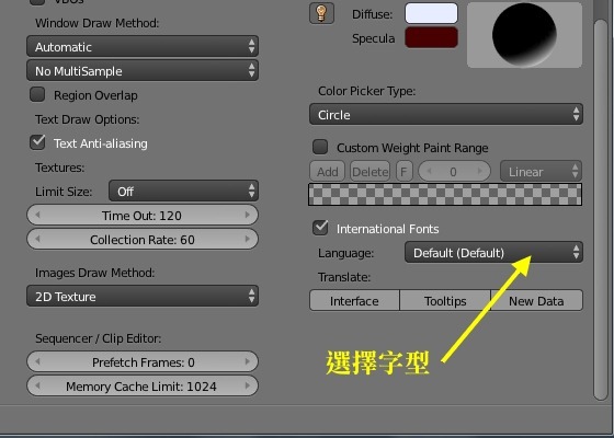 然後就會出現選擇字型的地方,如上圖,點選Language右側的選項後,就能進入多國語言選單。