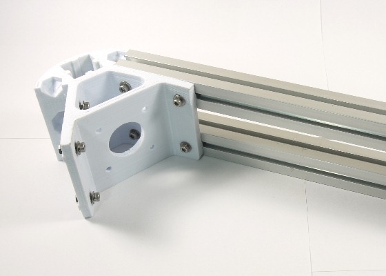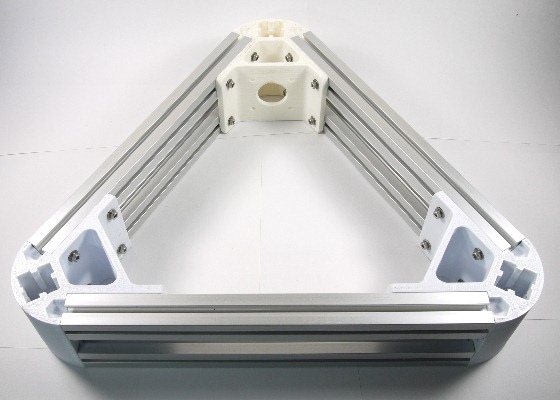 其實鋁材寄來很久了,底座的列印件也早印好了,只是一直因為各種原因拖著沒有動手組裝。好吧,廢話少說,上圖是第一個組件,寄來的鋁材包含240mm的鋁擠型共9支,600mm的鋁擠型共3支,今天要組裝的Kossel底座,總共需要6支240mm的鋁擠型。3D列印的討論區裡有人說底座不好組裝,還要買一大堆的輔助材料什麼的,其實我是覺得「江湖一點訣」,講破其實很簡單。